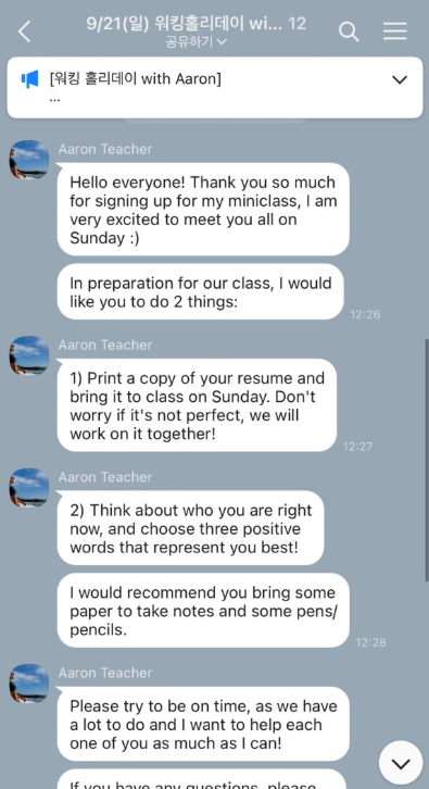 이렇게 친절하게 준비물과 격려를 들으며 설레는 수업으로