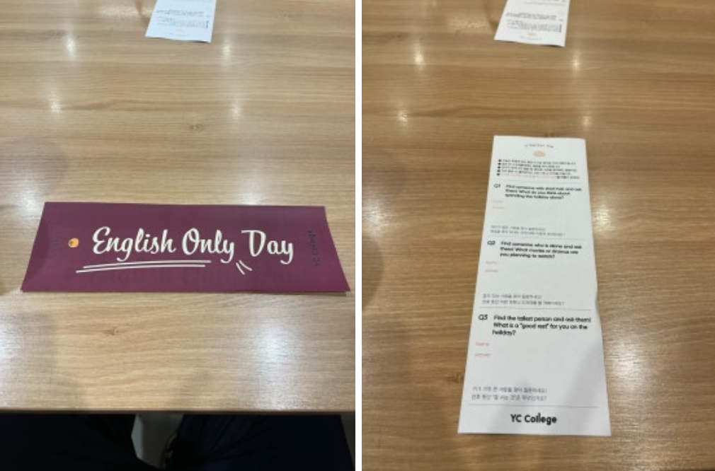 매달 종강날에는 English Only Day라 한국말 하면
