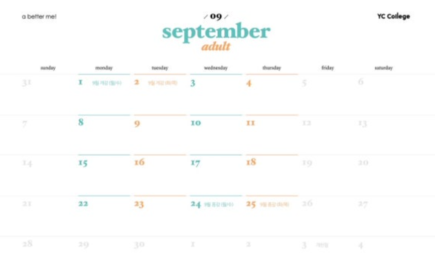 개강일과 종강일의 스케줄을 받고 1개월, 2개월, 4개월 단위로